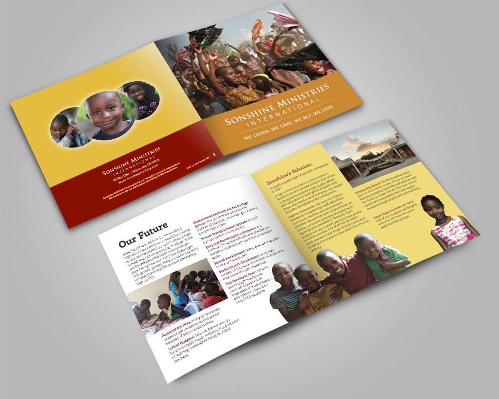 Concept development, design, and production of an 8-page booklet for a nonprofit ministry. The client wanted to highlight the accomplishments and future goals of the organization. Other collateral including invitations and donation cards were also designed.